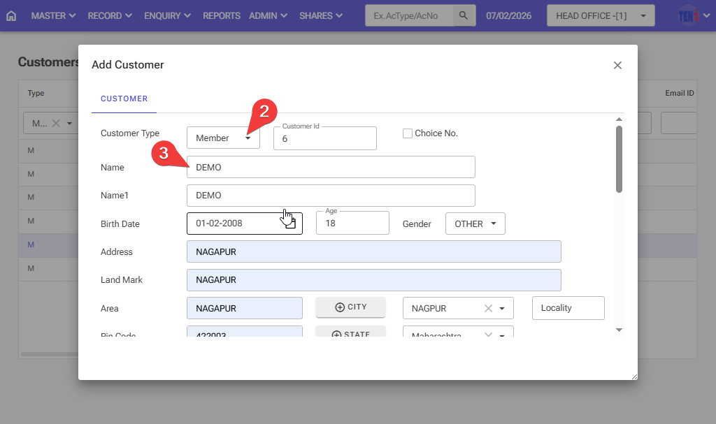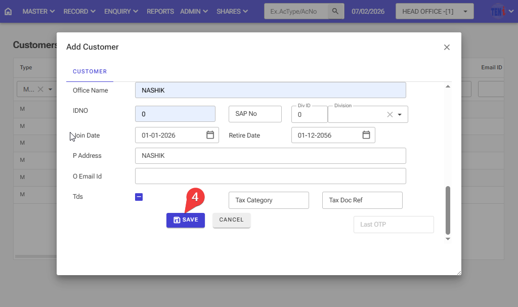Step 4: After filling in all the information, click on the Save button, and your customer account will be opened.