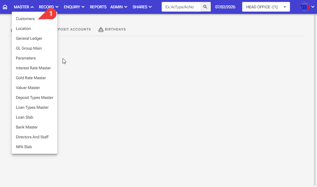 How to open a customer account: Follow these steps in the software.