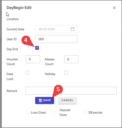 Step 4: Click on the Day end