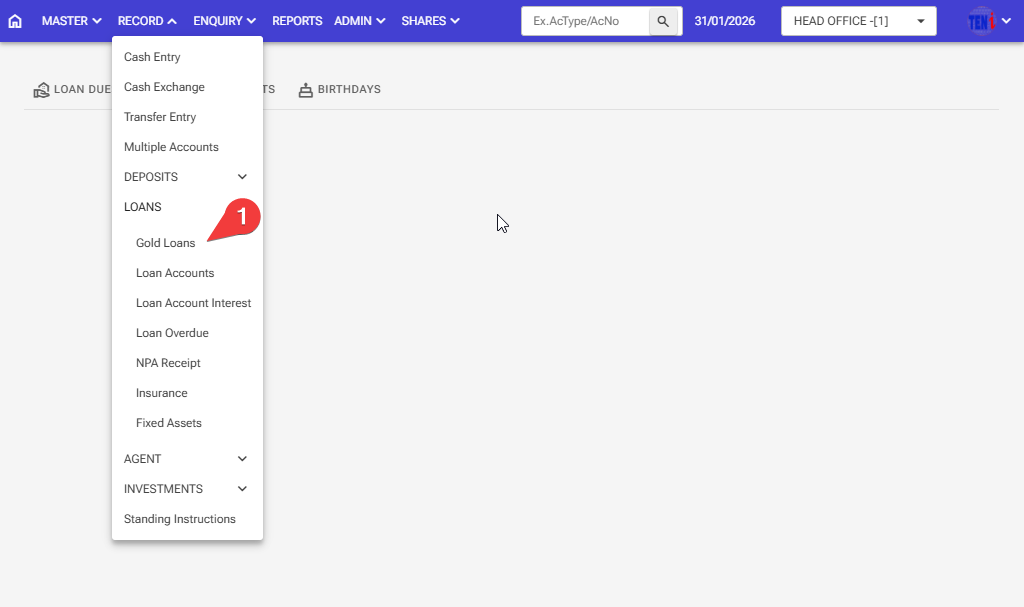 Step 1: Record > Loans > Gold loans