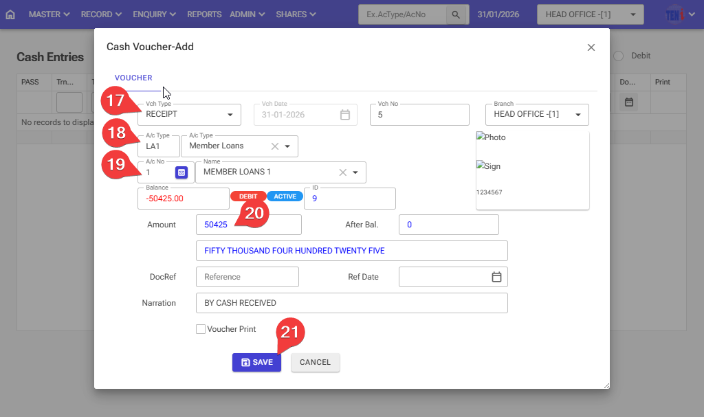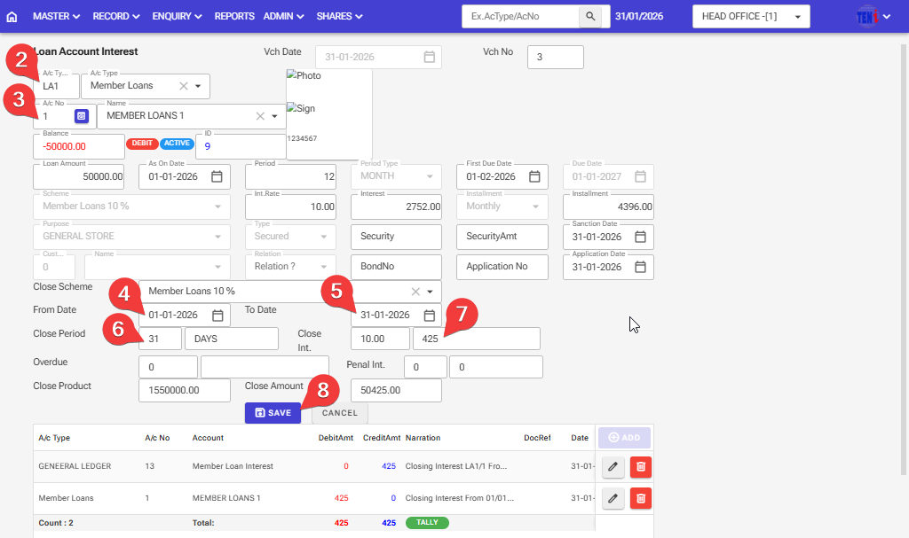 Step 21: After filling in all the information, click on the ‘Save’ button, and your member’s loan account will be closed