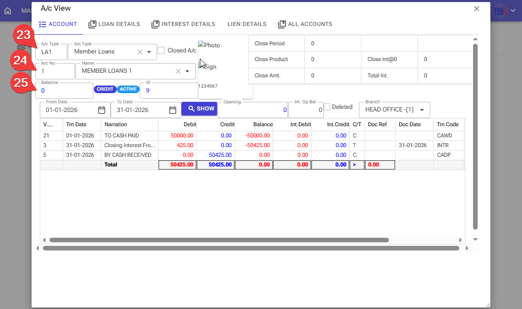 Step 25: The member’s loan account has been zero