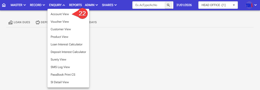 Step 22: How to check if a member’s loan account has become zero Enquiry > Account View
