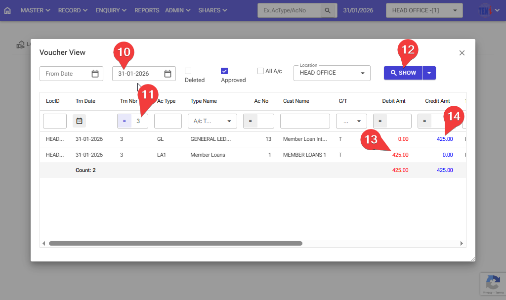 Step 11: Enter the voucher number on which the member’s loan Account transfer took place