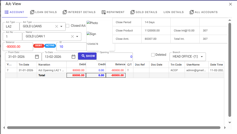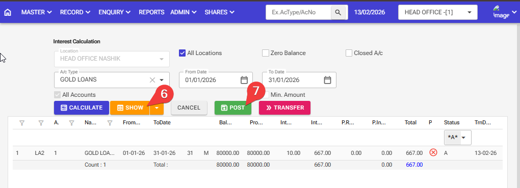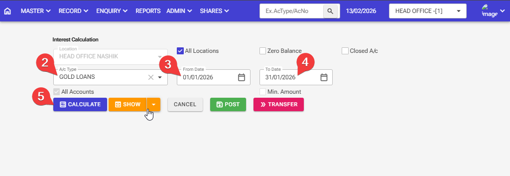 How to interest posting for the Gold Loan Account: Follow these steps in the software