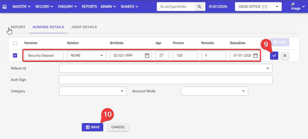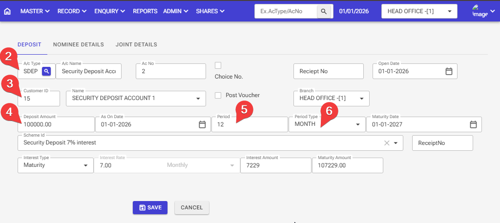 Step 10: After entering all the information, click the ‘Save’ button, and your Security Deposit account will be opened.