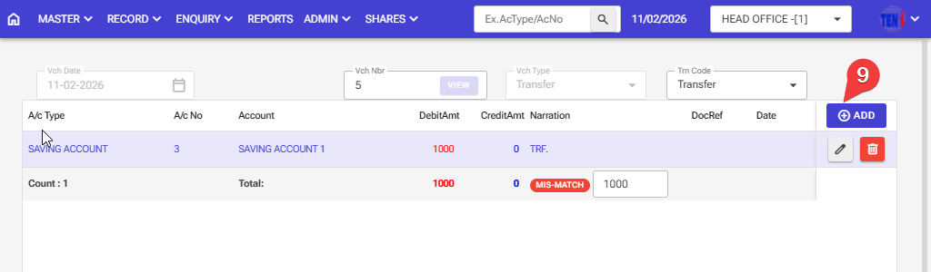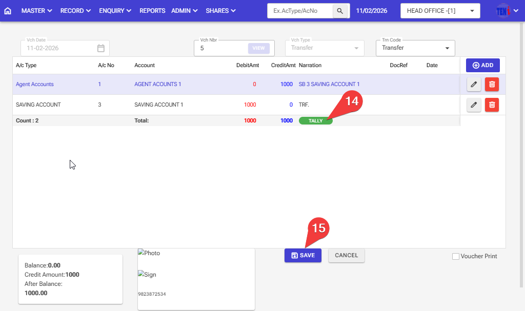 How to debit money from one account to another account and how to deposit money into it: Follow these steps in the software.