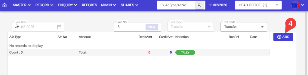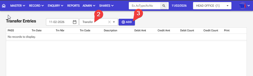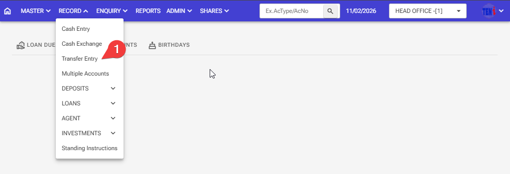 Step 1: Record > Transfer Entry