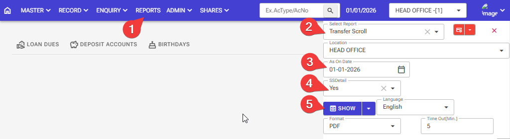Step 3: Select the date for which you want to generate the report for the Transfer Scroll