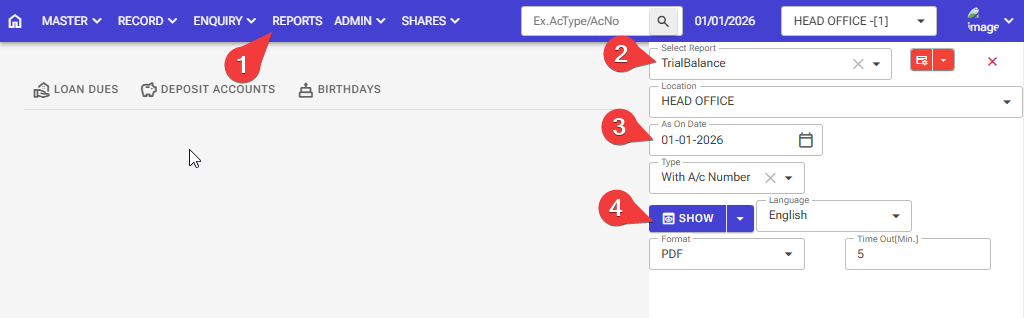 How to check the Trial Balance report: Follow these steps in the software.